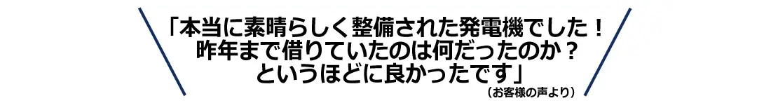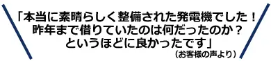 発電機レンタルは、精密な機械をお使いいただくため、トラブルが多い商品として業界では知られています。