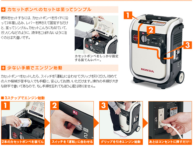 お使いいただくカセットボンベは、外気温5℃~40℃にてご使用ください。ガスの特性上、外気温5度未満ではエンジンが始動しないことがありますのでご注意下さいね。