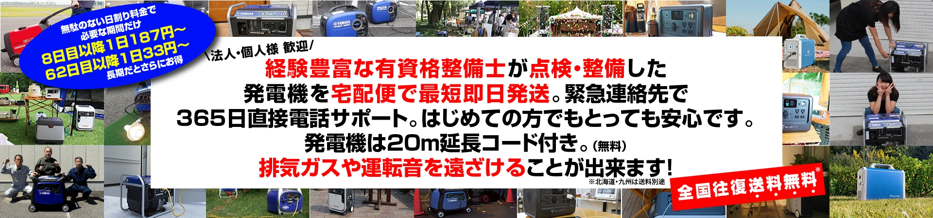 ●往復送料が別にかからないか?(発電機は重量がある為、他店では往復で数千円の送料が発生する場合がございます。)